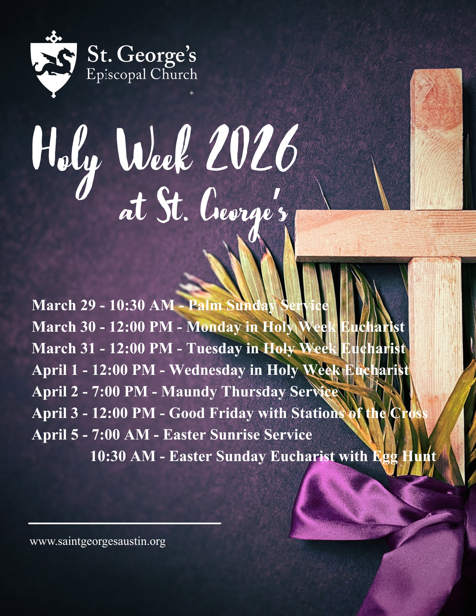 At St. George’s Episcopal Church, Holy Week is not just a series of services; it is a sacred journey we walk together. From the jubilant waving of palms to the profound silence of Good Friday and the radiant light of the Resurrection, we invite you to experience the deepest story of faith within a community that welcomes you exactly as you are.