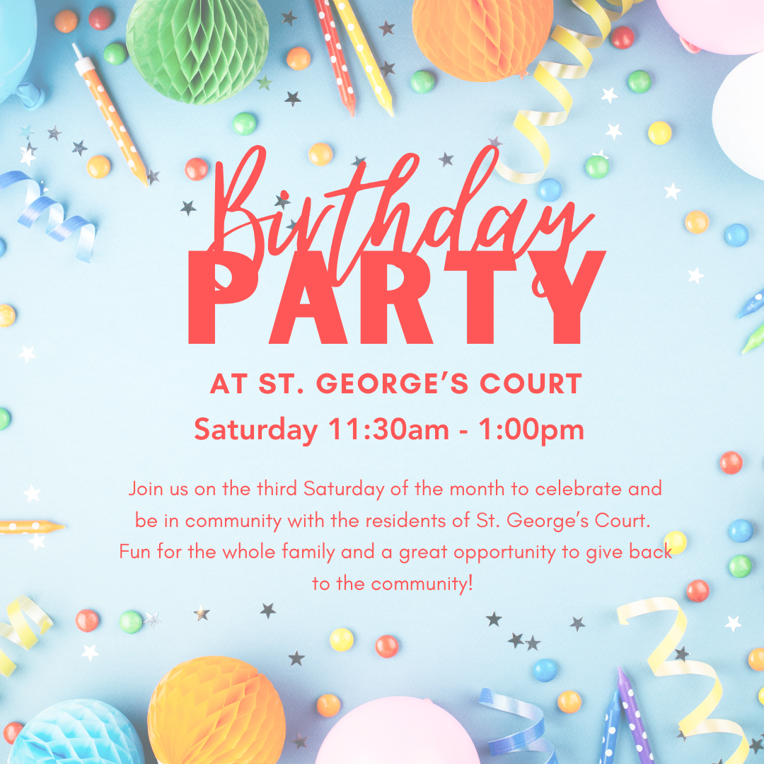 Join us at St. George’s Court, our affordable housing ministry for senior adults and people with disabilities, to celebrate residents’ birthdays (March 21). Help provide lunch, a cake, fruit/veggies, or interaction and conversation. Email andreagalsparks@gmail.com to sign up and learn more.
